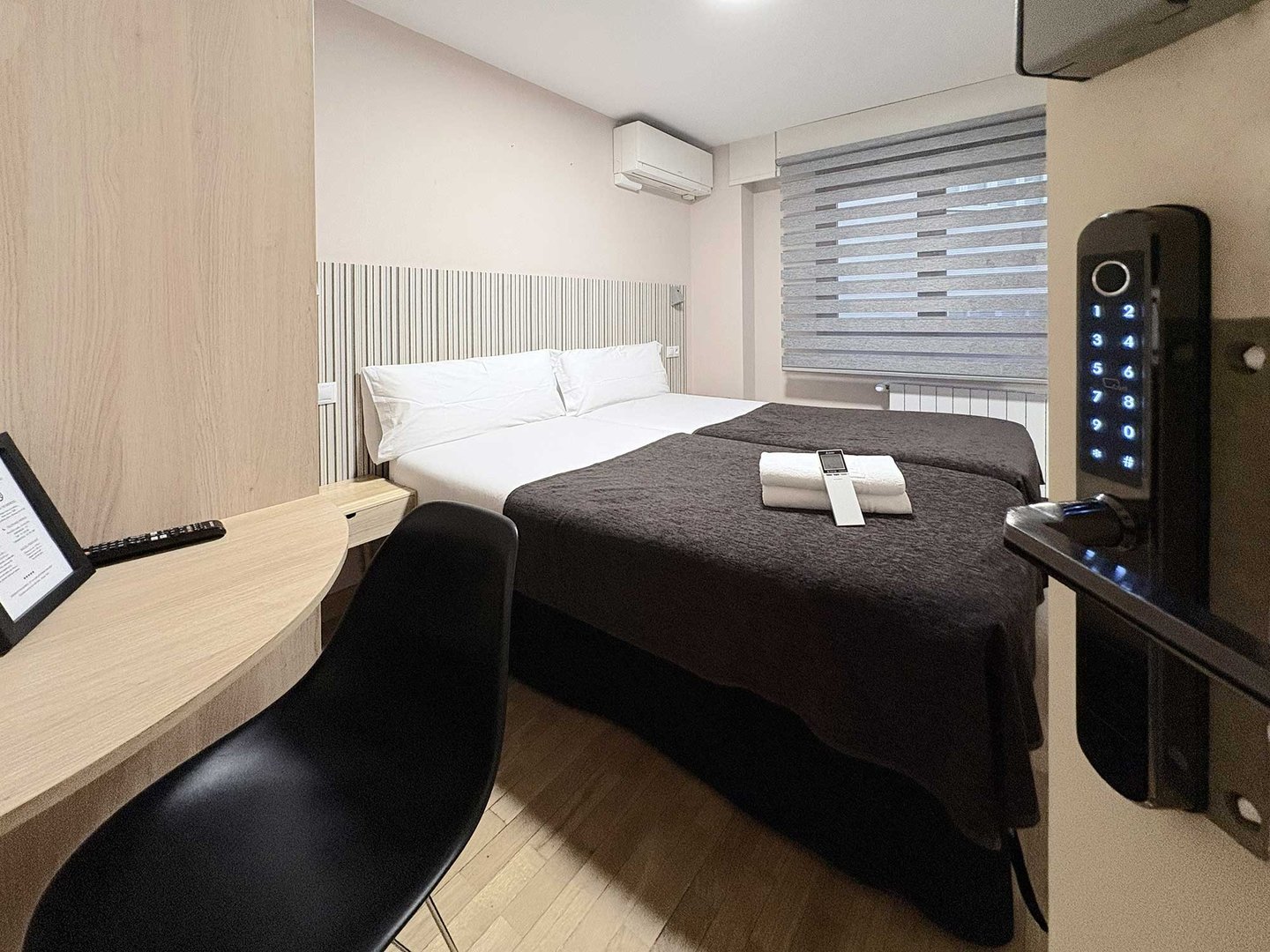 Ideal para amigos o compañeros de viaje. Con WiFi gratis, TV, escritorio y baño compartido siempre limpio. Incluye calefacción, limpieza diaria y todos los servicios de Pensión Laurel.