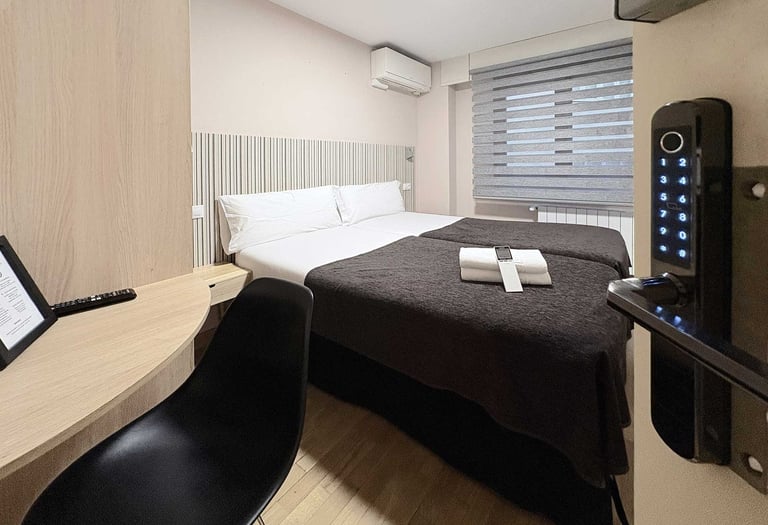 Ideal para parejas o compañeros de viaje. Con WiFi gratis, TV, escritorio, calefacción, aire acondicionado, además de limpieza diaria, con baño compartido siempre limpio.